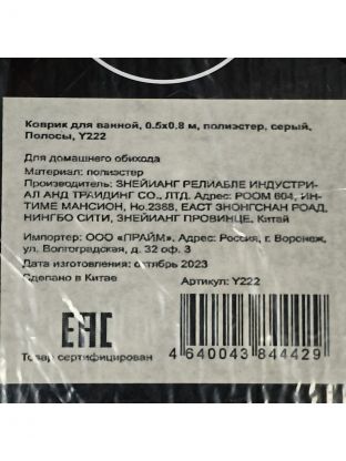 Коврик для ванной, антискользящий, 0.5х0.8 м, полиэстер, серый, Полосы, Y222