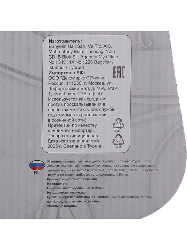 Закажите антискользящий коврик для ванной Banyolin Silver сейчас — получите надёжную защиту, стиль и простоту ухода по выгодной цене с гарантией качества от турецкого производителя.