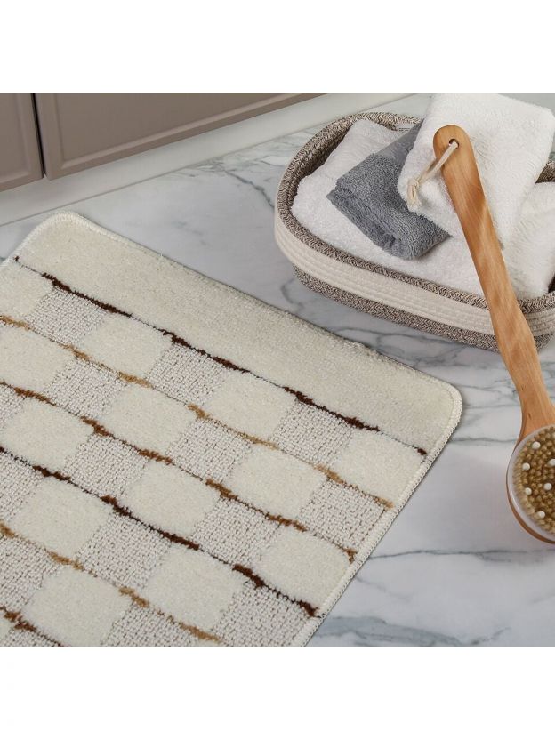 Коврик для ванной антискользящий Banyolin Silver — это современное решение для тех, кто ищет, какой коврик выбрать для ванной, чтобы обеспечить безопасность и уют. Благодаря быстросохнущему полипропилену, изделие не впитывает влагу, не накапливает запахи и легко очищается. Его прямоугольная форма и нейтральный кремовый цвет гармонично вписываются в любой интерьер, а рисунок из квадратов добавляет стильный акцент.
