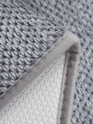 Коврик имеет прямоугольную форму, длина — 80 см, ширина — 50 см. Цвет — серый, рисунок отсутствует.