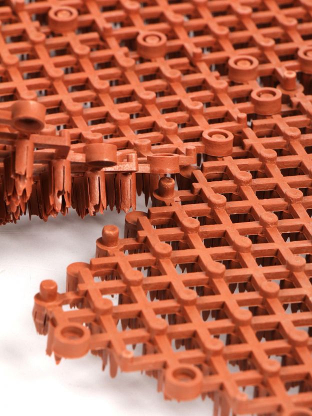 Коврик выполнен из износостойкого полиэтилена, не впитывает влагу, устойчив к перепадам температур и подходит для внешнего и внутреннего использования.