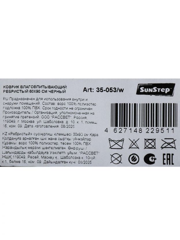 Грязезащитный коврик 60х90 см Sunstep: надёжная защита пола от грязи и влаги для дома, офиса и дачи. Прочный, ребристый, стильный — для чистоты без лишних хлопот.