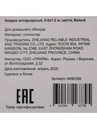 Белый интерьерный коврик шегги 0.6х1.2 м — уют и стиль в вашем доме: идеальный выбор для спальни, гостиной или прихожей, быстрое обновление интерьера без лишних затрат.