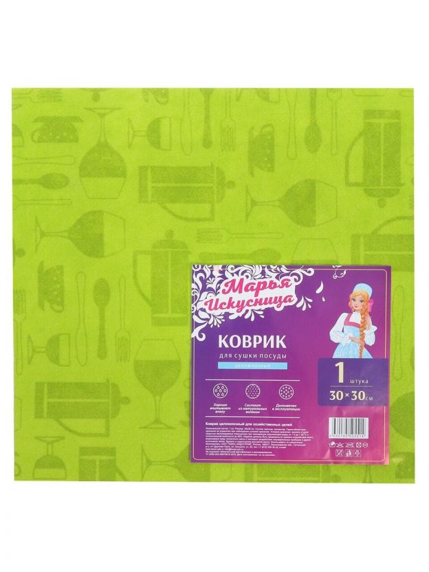 Коврик кухонный для посуды, вискоза, 30х30 см, в ассортименте, Марья Искусница