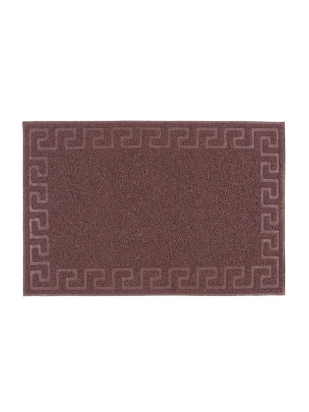 Размер коврика — 60х90 см, форма прямоугольная, цвет — коричневый, что удобно для большинства входных зон.