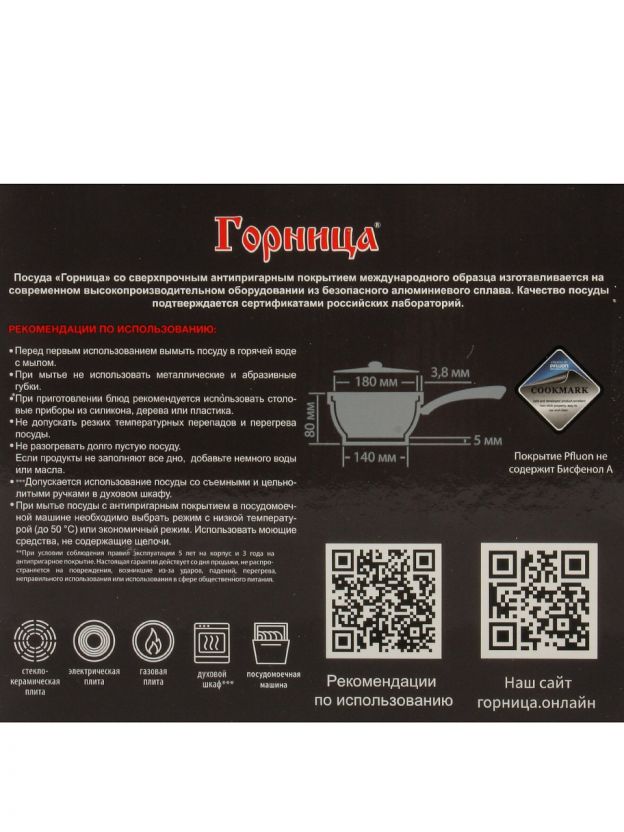 - Антипригарное покрытие «Гранит Induction» — пища не прилипает, легко мыть, подходит для индукционных плит