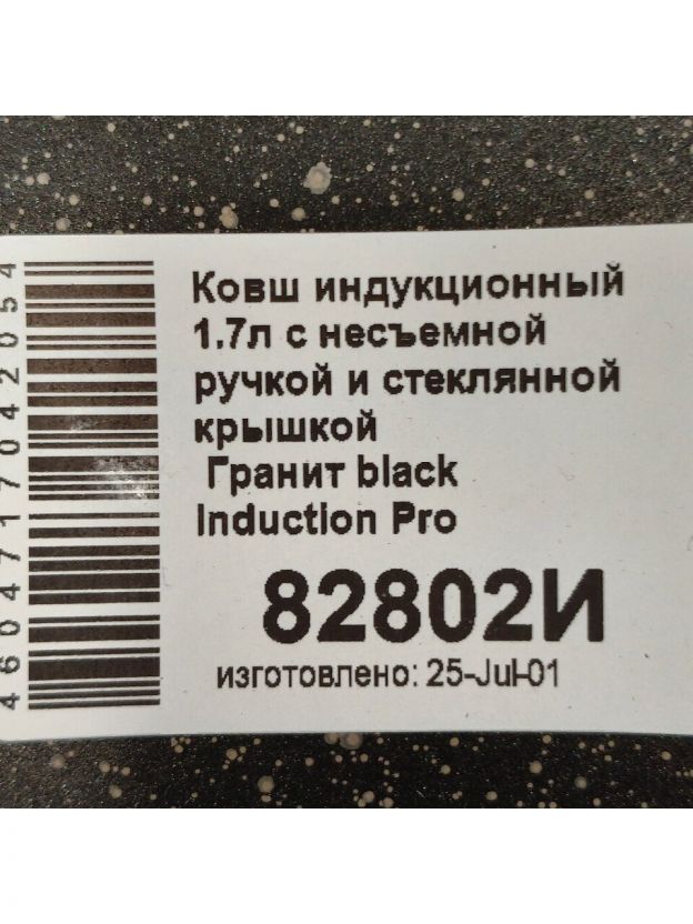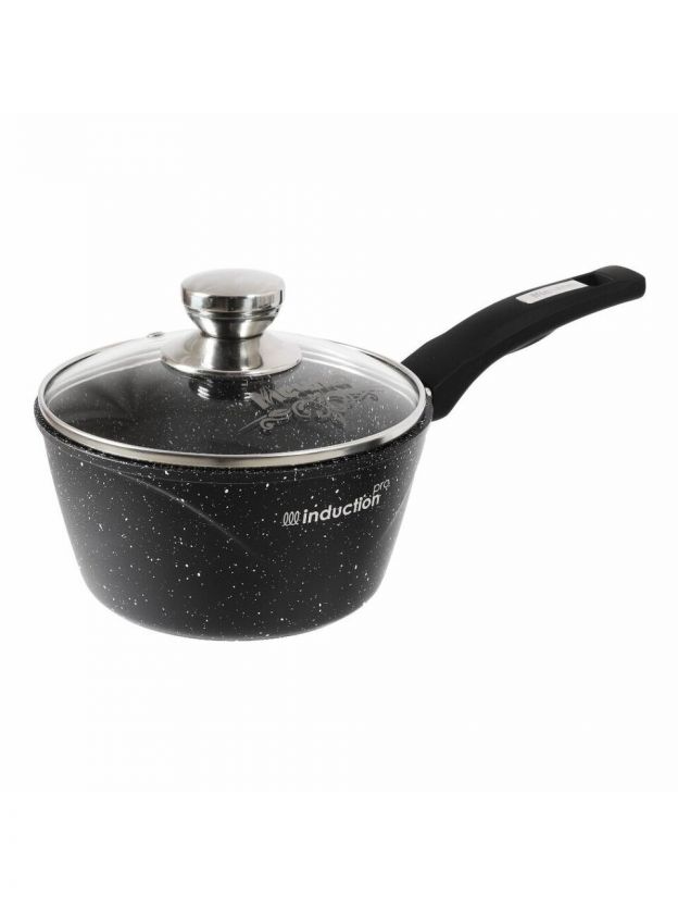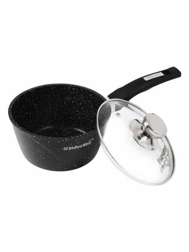 Ковш алюминий, антипригарное покрытие, 1.7 л, крышка стекло, бакелитовая ручка, Мечта, Гранит black Induction Pro, 82802И