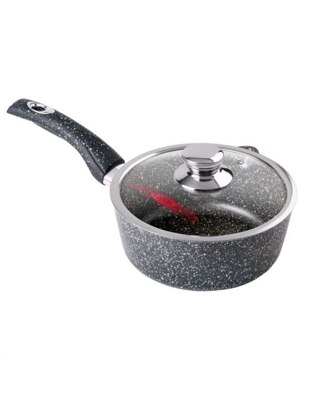 Ковш алюминий, антипригарное покрытие, 2 л, крышка стекло, бакелитовая ручка, съемная ручка, Горница, Гранит, кш2013аг