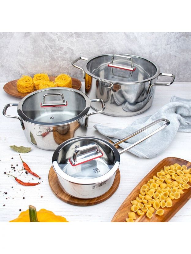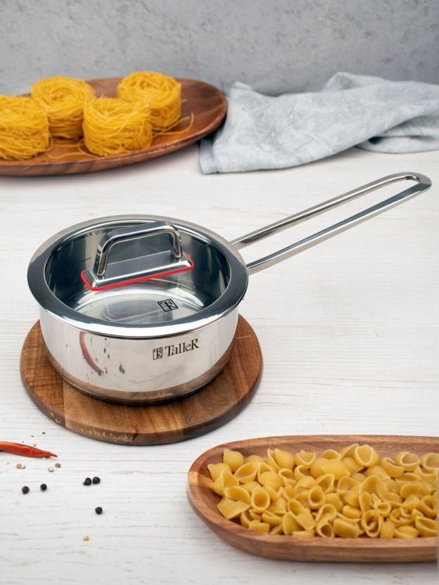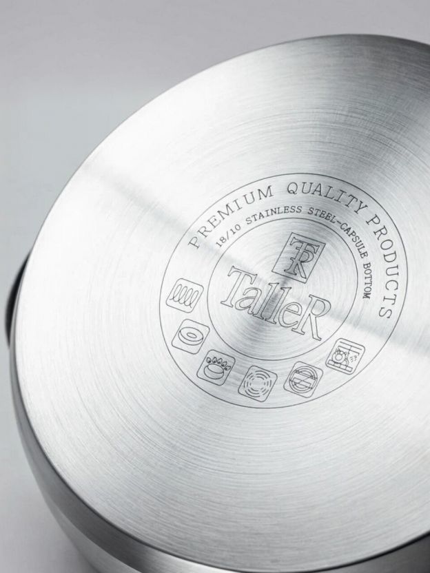 Ковш из высококачественной нержавеющей стали обладает превосходными характеристиками прочности, надежности и долговечности. Благодаря уникальному капсулированному многослойному дну, тепло распределяется равномерно по всей поверхности, что ускоряет процесс приготовления и улучшает качество еды. Посуда TalleR привлекает внимание своим стильным дизайном, экологичностью и высоким качеством материалов, завоевывая сердца как домашних кулинаров, так и профессиональных поваров.