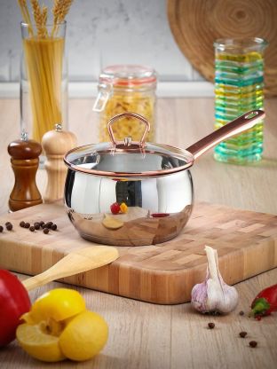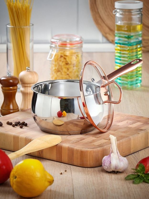 - Металлическая ручка удобна, прочна и не нагревается при использовании посуды;