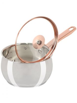 Ковш нержавеющая сталь, 1.8 л, крышка стекло, ручка нержавеющая сталь, индукция, Daniks, Карлин, GS-01332G-16S