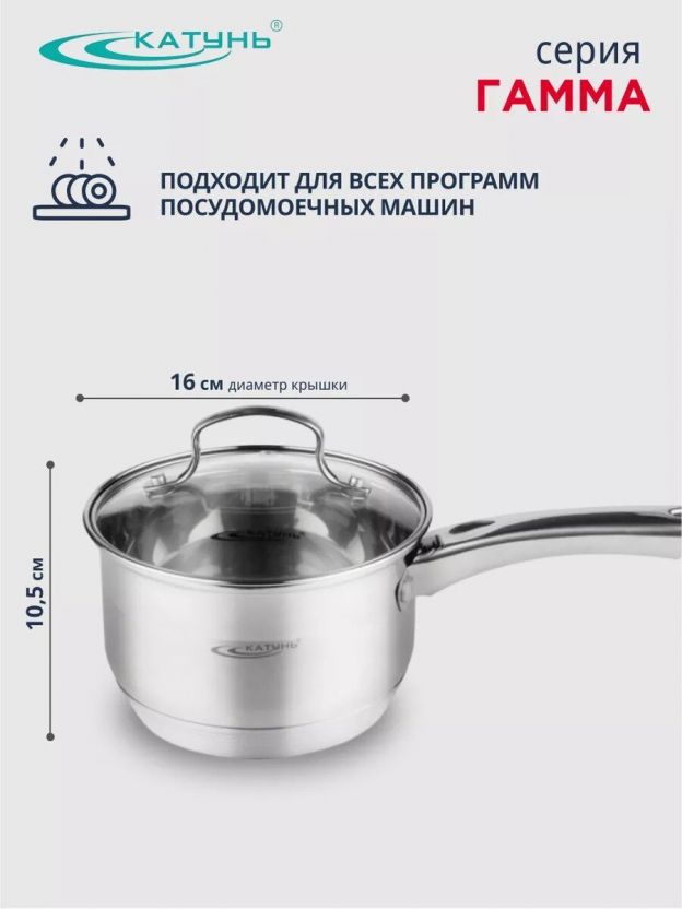 Ковш нержавеющая сталь, 1.8 л, крышка стекло, ручка нержавеющая сталь, индукция, Катунь, Гамма, КТ20-К