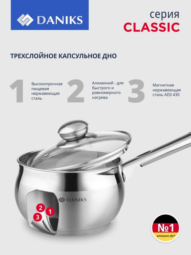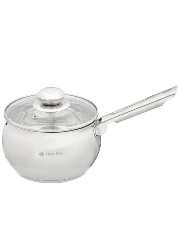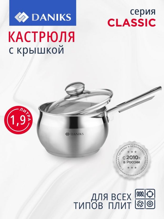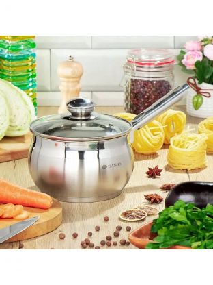 Ковш Daniks Классика 1.9 л из нержавеющей стали: оптимальный выбор для дома и дачи, подходит для всех плит, включая индукцию. Прозрачная крышка, мерная шкала и долговечная ручка — всё для вашего комфорта.