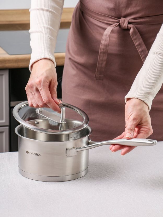 Ковш Daniks Тахо 1.9 л — это современный выбор для тех, кто ищет долговечную посуду для ежедневного использования. Благодаря прочному корпусу из нержавеющей стали и металлической ручке, ковш выдерживает интенсивную эксплуатацию и не теряет внешний вид даже после многократного мытья в посудомоечной машине. Прозрачная стеклянная крышка позволяет контролировать процесс приготовления, а мерная шкала внутри облегчает дозировку ингредиентов.