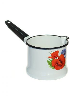Ковш сталь, эмалированное покрытие, 1 л, стальная ручка, индукция, Керченский металлургический завод, 90104-072/4, в ассортименте