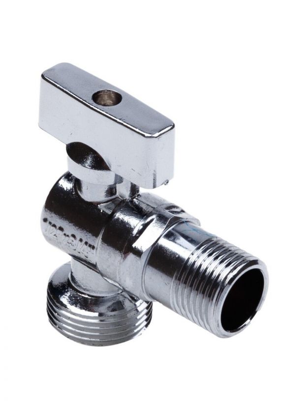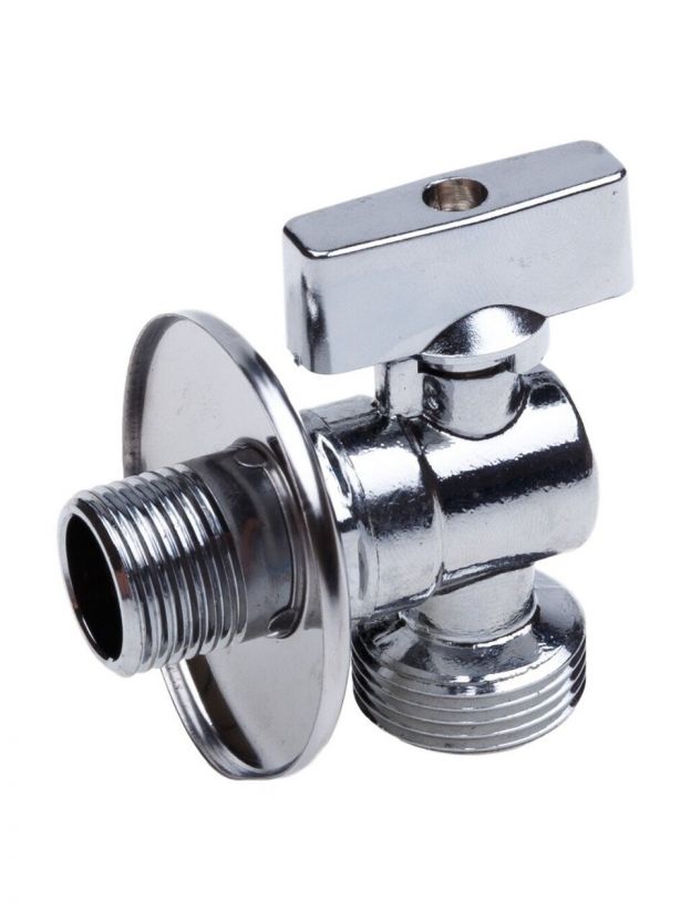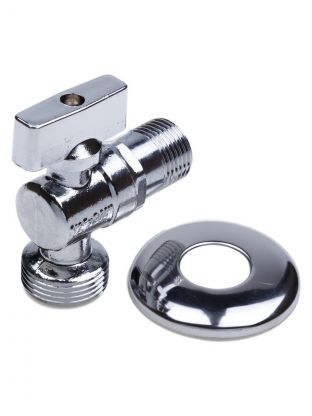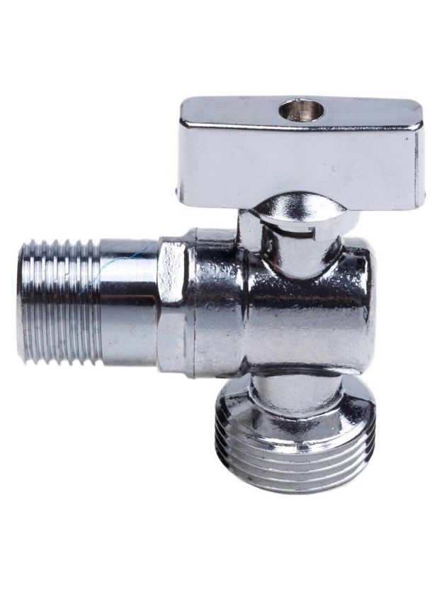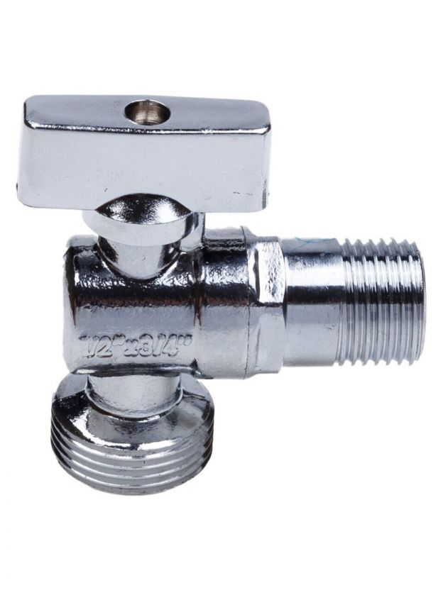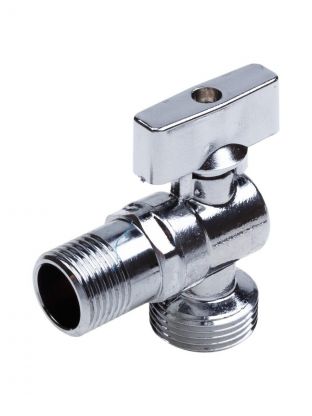 Кран 1/2х3/4", ш-ш, латунь, угловой с удлиненной резьбой и отражателем, бабочка, хром, AquaLink