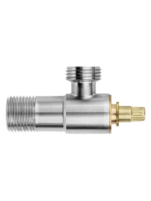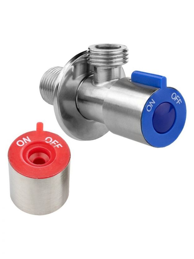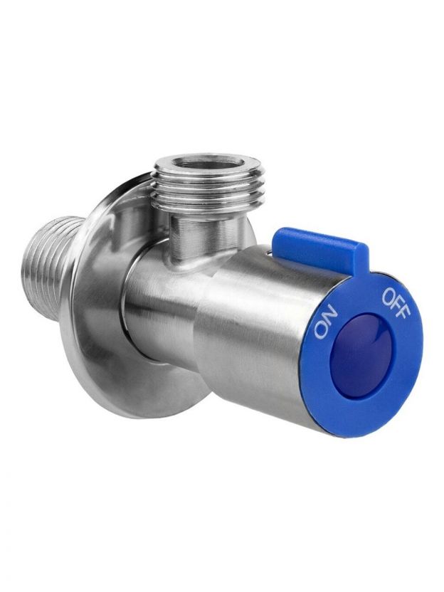 Кран для бытовых приборов, 1/2", ш-ш, нержавеющая сталь, угловой, круглая ручка, MasterProf