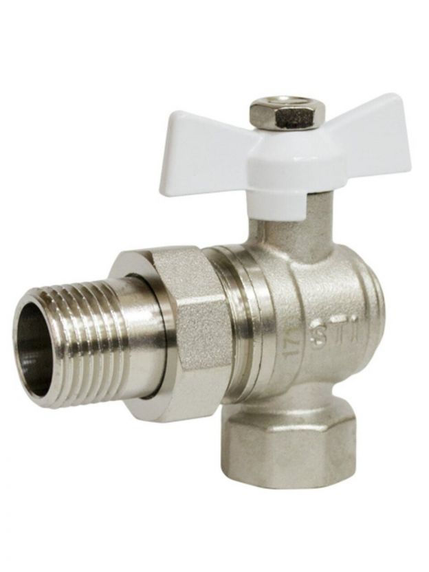 Кран для воды, 1/2'', латунь, угловой, ручка-бабочка, с американкой, STI