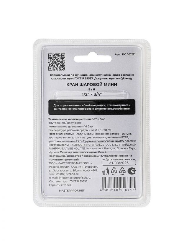 Выбирая кран для воды MasterProf, обеспечивается не только функциональность, но и долговечность, безопасность и простота в использовании. Надежное решение для тех, кто заботится о качестве жизни и удобстве в доме или на даче.