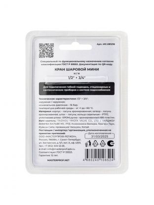 Выбирая кран для воды (мини) MasterProf, клиент получает не только качественный продукт, но и уверенность в надежности водоснабжения. Минимизация риска протечек, удобство эксплуатации и долговечность позволяют экономить время и средства на обслуживание сантехники, создавая комфортные условия для жизни и работы в доме или на даче.