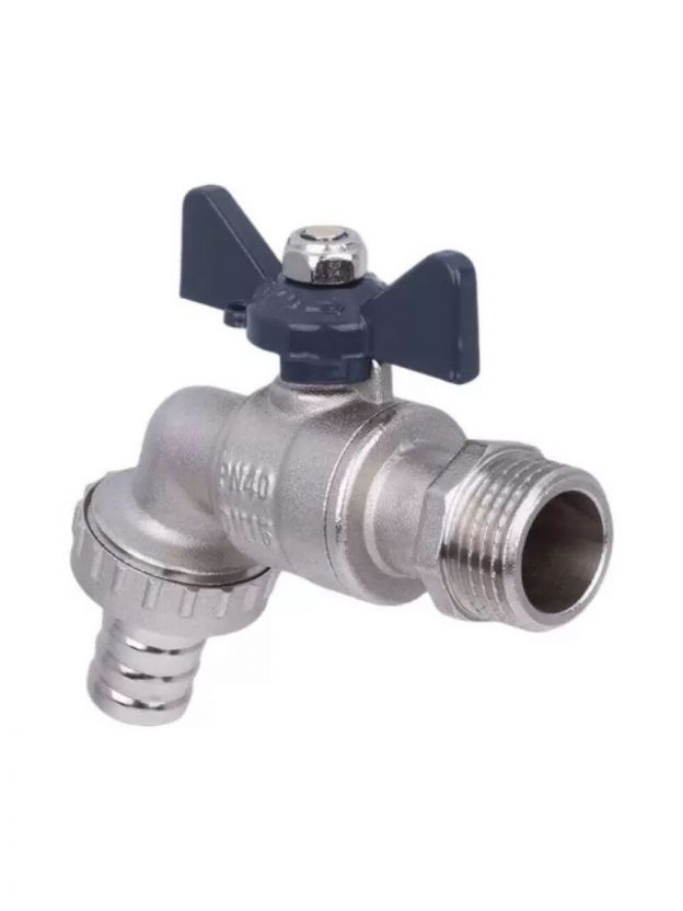 Кран водоразборный 1/2'', латунь, со штуцером, ручка-бабочка, AquaLink