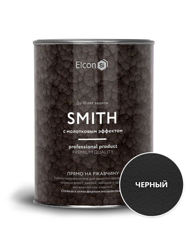 Краска Elcon, Smith, алкидная, кузнечная, влагостойкая, полуглянцевая, черная, 0.8 кг, с молотковым эффектом