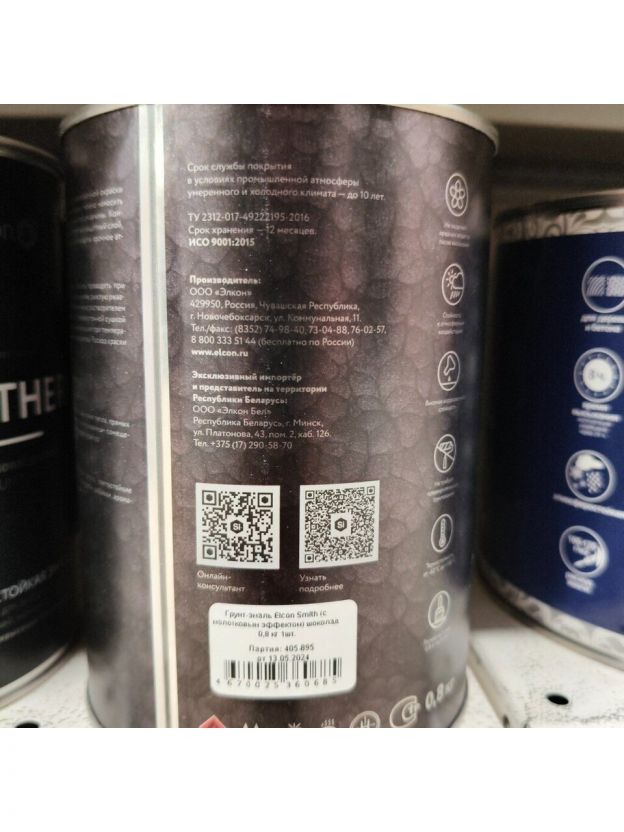 Краска Elcon, Smith, алкидная, кузнечная, влагостойкая, полуглянцевая, шоколадная, 0.8 кг, с молотковым эффектом