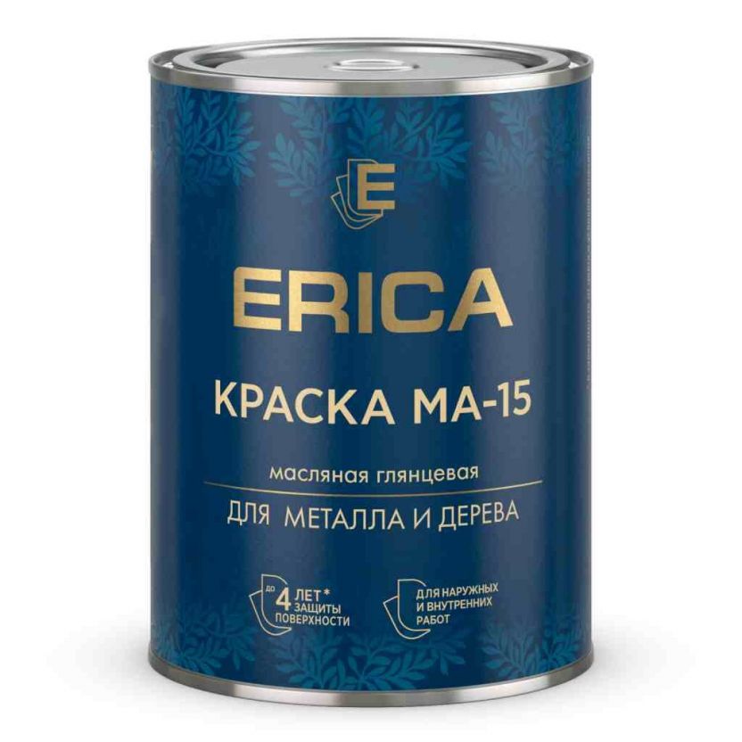 Краска Erica МА-115 предназначена для окрашивания деревянных и металлических поверхностей, например: оконных рам, подоконников, дверей, решёток, металлических конструкций (кроме окраски пола). Подходит для внутренних и наружных работ.