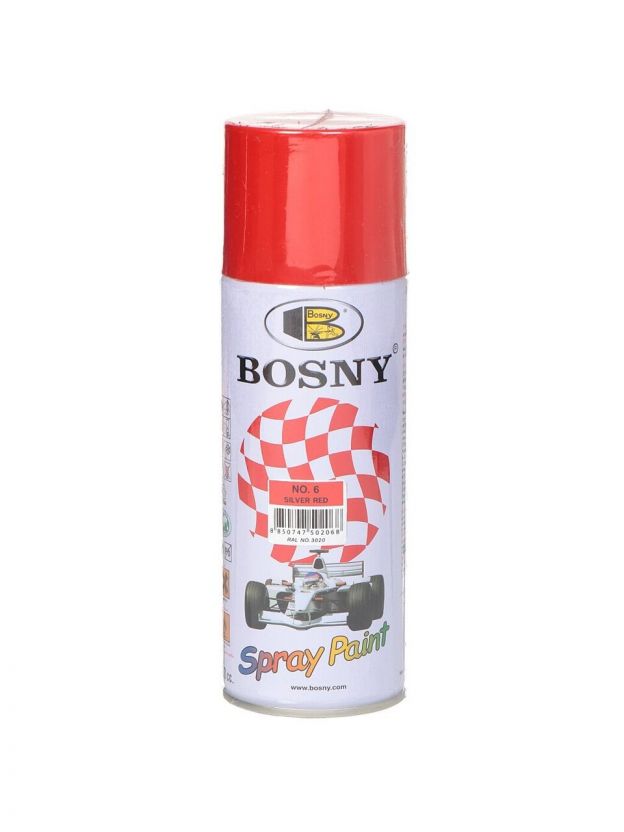 Краска аэрозольная, Bosny, №6, акрилово-эпоксидная, универсальная, глянцевая, красная, 0.4 кг