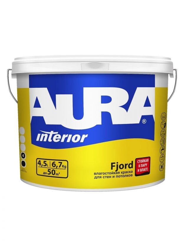 Краска водно-дисперсионная, Aura, Fjord, акриловая, интерьерная, влагостойкая, матовая, 4.5 л