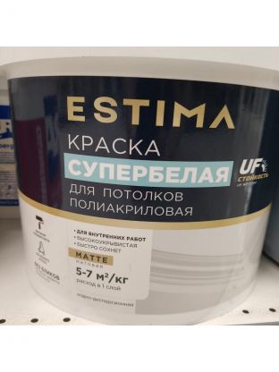 Краска водно-дисперсионная, Estima, полиакриловая, для потолков, матовая, супербелая, 13 кг