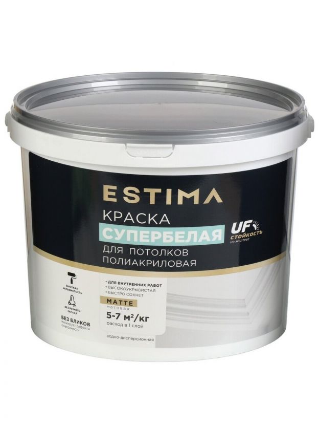 Представляем воднодисперсионную полиакриловую краску Estima, специально разработанную для потолков. Она обладает уникальными характеристиками, которые делают ее отличным выбором для создания идеального интерьера. Эта краска не только придаст вашему потолку безупречный вид, но и обеспечит долговечность и качество покрытия.