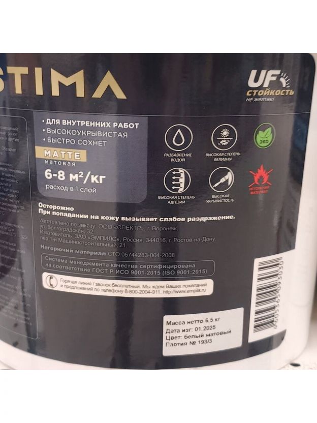 Представляем вашему вниманию интерьерную краску Estima – идеальный выбор для тех, кто стремится создать уют и стиль в своем доме. Эта воднодисперсионная полиакриловая краска станет вашим надежным помощником в обновлении интерьера, придавая стенам и потолкам элегантный матовый вид. Белый цвет краски подчеркнет чистоту и простоту, создавая атмосферу свежести и гармонии.