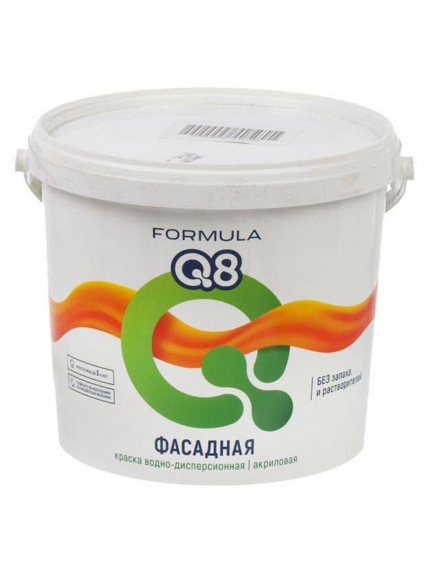 Краска водно-дисперсионная, Formula Q8, акриловая, фасадная, матовая, белая, 6.5 кг