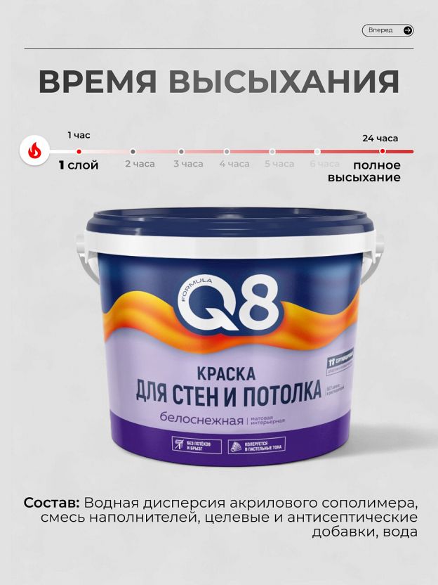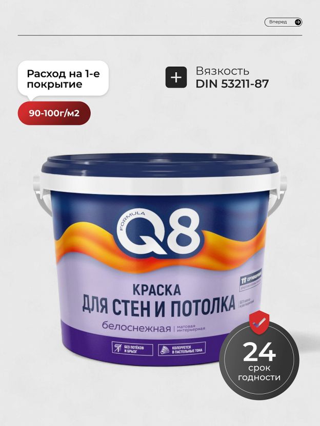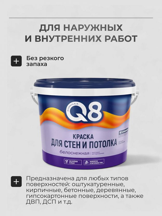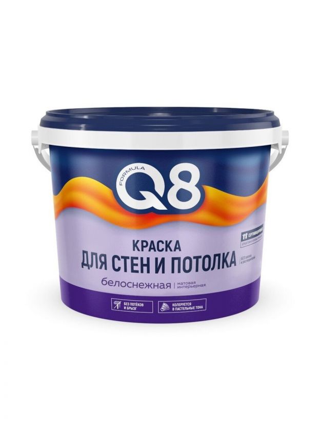 Краска водно-дисперсионная, Formula Q8, акриловая, интерьерная, матовая, 13 кг