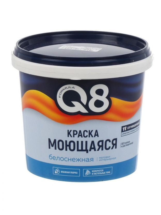 Краска водно-дисперсионная, Formula Q8, акриловая, универсальная, моющаяся, влагостойкая, матовая, белоснежная, 1.4 кг