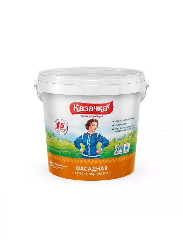Краска водно-дисперсионная, Казачка, F-20, акриловая, фасадная, матовая, 1.4 кг