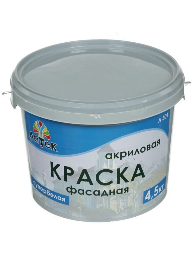 Краска водно-дисперсионная, Оптимист, Латек Л301, акриловая, фасадная, влагостойкая, матовая, 4.5 кг