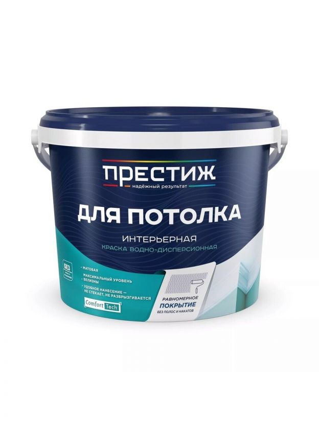 Краска водно-дисперсионная, Престиж, W1 ВД-АК-212, акриловая, для потолков, матовая, супербелая, 2.7 кг