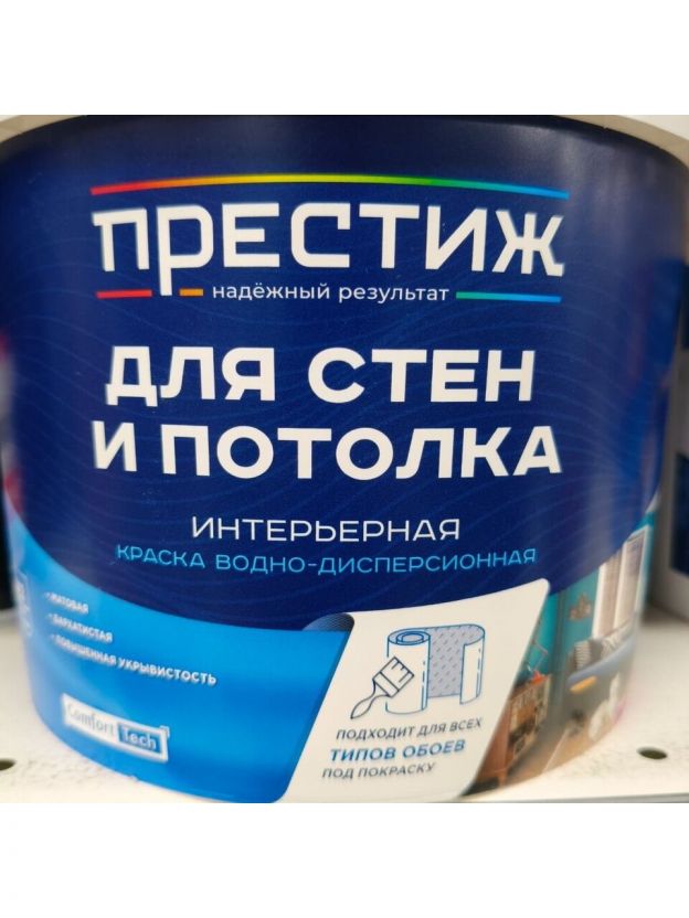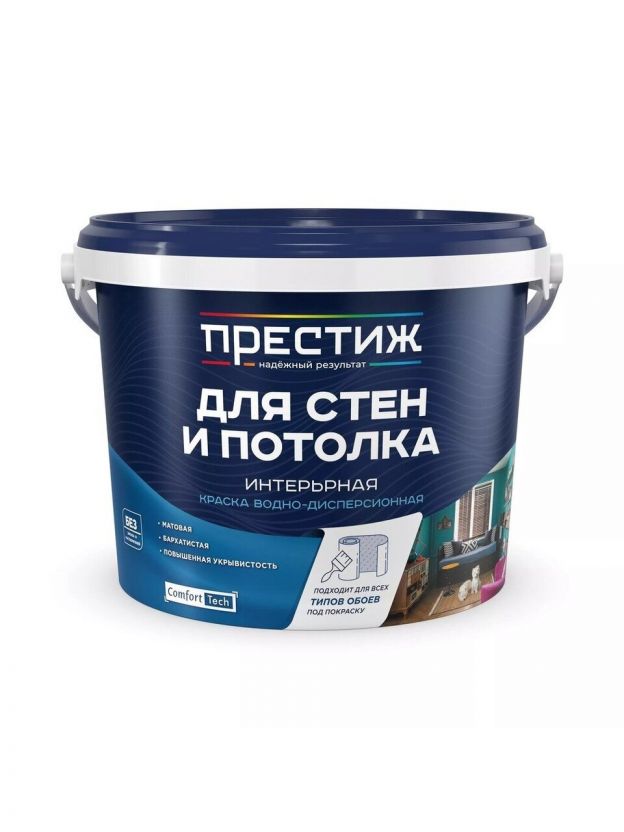 Краска водно-дисперсионная, Престиж, W3 ВД-АК-212, акриловая, интерьерная, матовая, супербелая, 2.7 кг