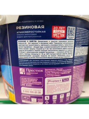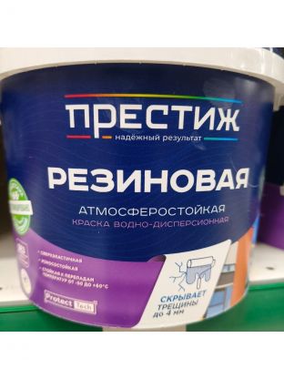 Краска водно-дисперсионная, Престиж, резиновая, влагостойкая, матовая, серая, 2.4 кг