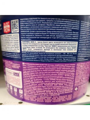 Рекомендации Для получения качественного покрытия наносить 3 слоя. Краска белого цвета колеруется в пастельные тона. Частая и усиленная чистка отдельных участков поверхности изменит их внешний вид. Предназначена для нанесения на поверхности постоянно контактирующие с водой. Не наносить на полы, бордюры, цоколь.