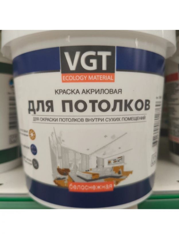Краска водно-дисперсионная, VGT, акриловая, для потолков, матовая, белоснежная, 1.5 кг