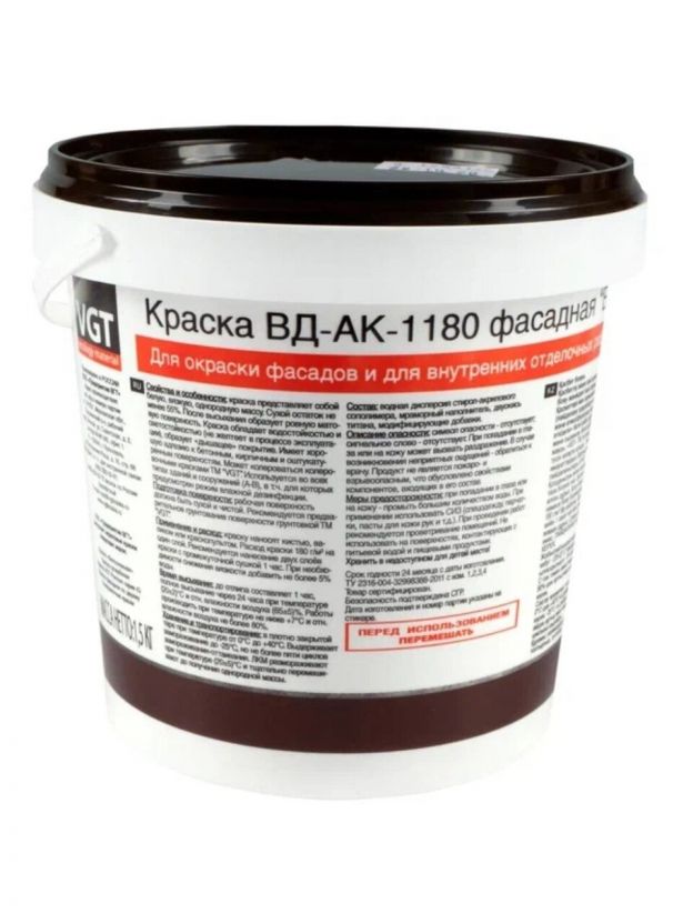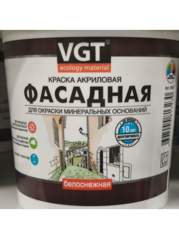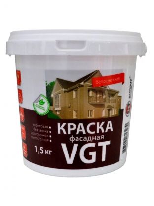 Краска водно-дисперсионная, VGT, акриловая, фасадная, матовая, белоснежная, 1.5 кг