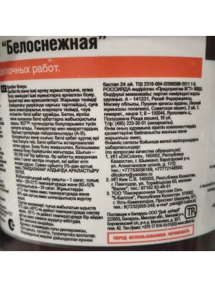 - Разбавитель: Вода, не более 5%.