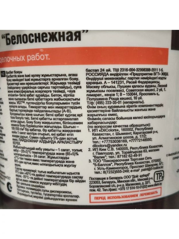- Колеровка: Может колероваться колеровочными красками фирмы VGT.