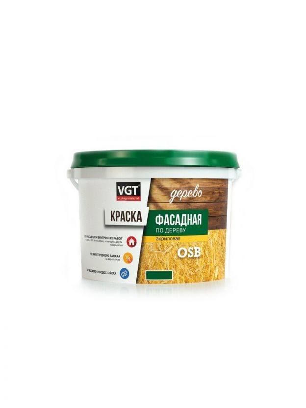 Краска водно-дисперсионная, VGT, акриловая, фасадная по дереву, влагостойкая, матовая, 15 кг