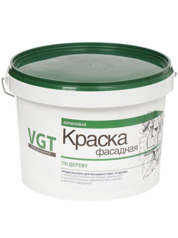Краска водно-дисперсионная, VGT, акриловая, фасадная по дереву, влагостойкая, матовая, 3 кг
