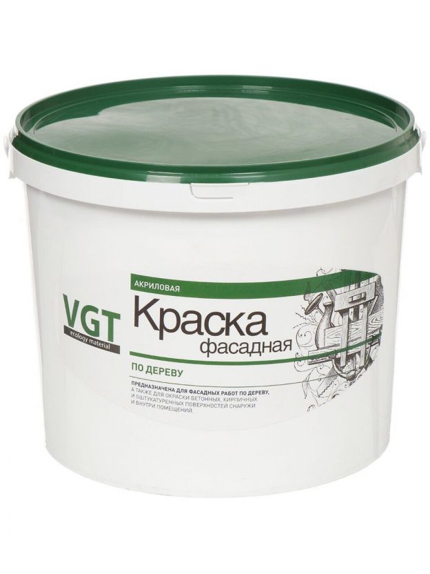 Краска водно-дисперсионная, VGT, акриловая, фасадная по дереву, влагостойкая, матовая, 7 кг