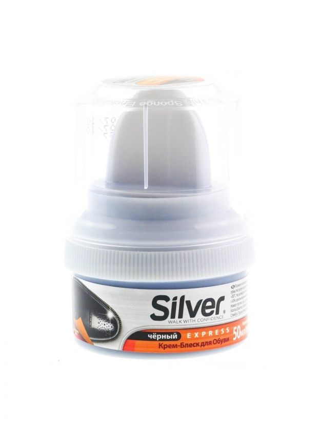 Крем Silver, для обуви, 50 мл, с губкой, черный, KS3001-01/KS2001-01